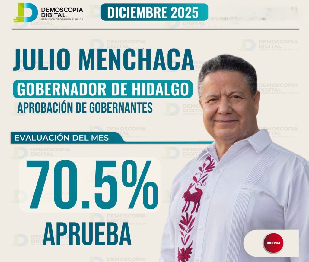 Con este resultado, Hidalgo se posiciona como una de las entidades con mayor respaldo ciudadano a su gobierno estatal, colocando a Julio Menchaca como referente nacional en aprobación gubernamental al cierre de 2025.
