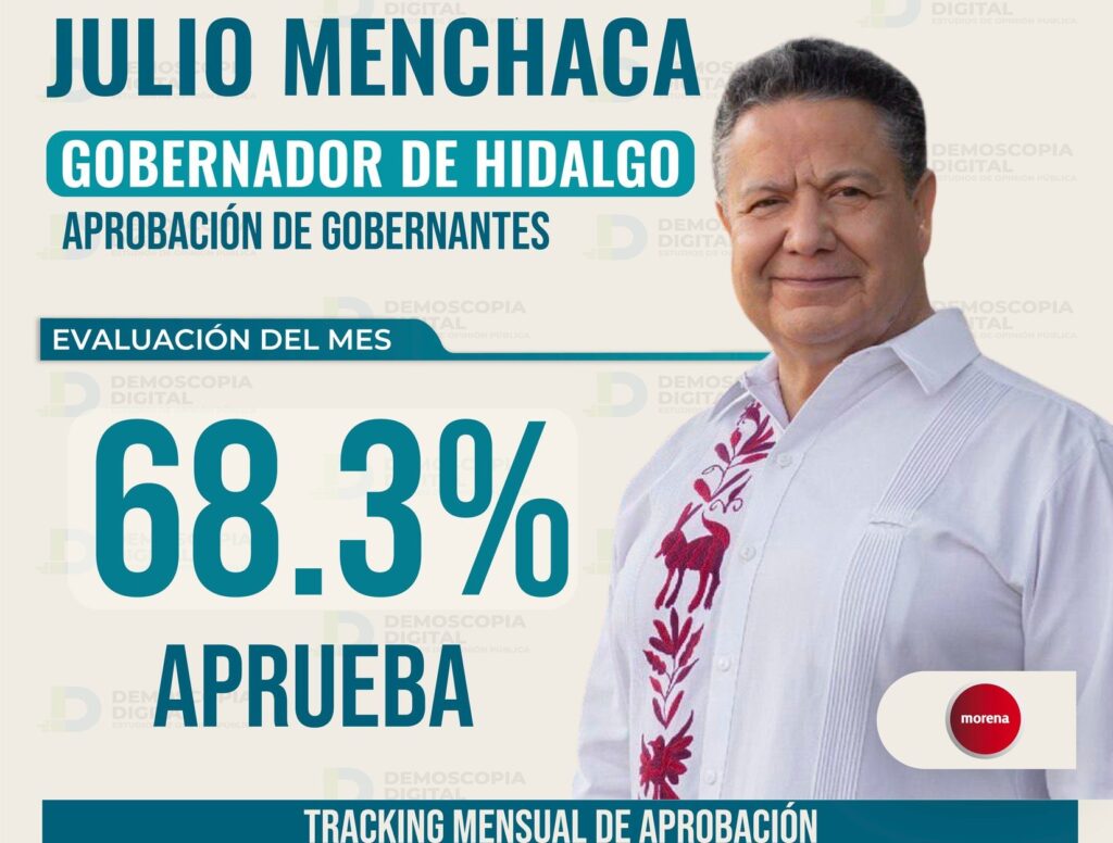 El gobernador de Hidalgo, Julio Menchaca Salazar, se posicionó como uno de los mandatarios con mayor aprobación ciudadana en México. De acuerdo con el informe más reciente de Demoscopia Digital, correspondiente a noviembre de 2025, el Ejecutivo hidalguense alcanzó una aprobación del 68.3%, ubicándose en el tercer lugar a nivel nacional.