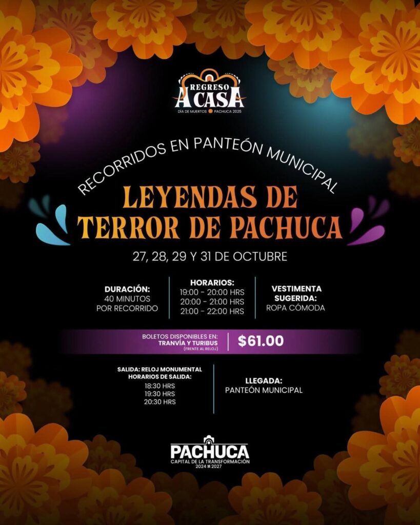El panteón municipal de Pachuca se transforma esta temporada en un espacio de misterio y cultura con los recorridos “Leyendas de Terror de Pachuca”, una experiencia que combina teatro, historia y tradiciones locales para celebrar el Día de Muertos 2025.